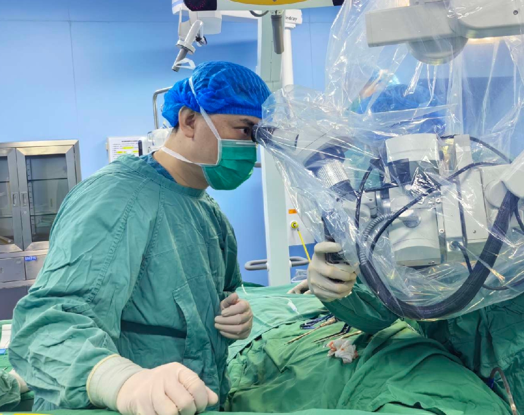 就在这时,冯女士听说上海援疆专家叶晶亮被派驻自治区人民医院克拉玛依医院神经外科,于是找到了叶晶亮主任,一接触冯女士就被专家的专业和坦诚所打动。叶晶亮解释说:“很多患者一听说要做脑膜瘤切除手术,就会联想到传统开颅,觉得要大范围切开颅骨,创伤大、恢复慢,风险也高。但现在我们有了新的‘武器’,手术方式已经发生了很大变化。”