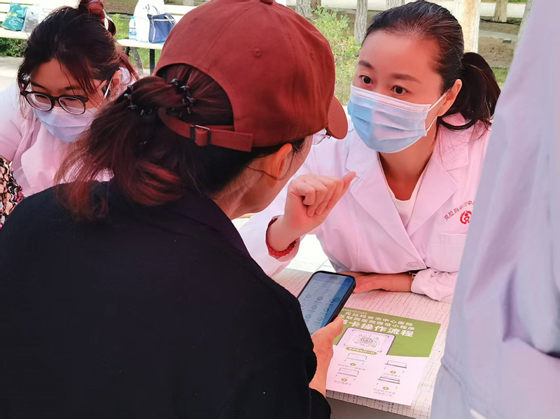 在义诊现场,分级诊疗中心工作人员同步开展服务,积极推广互联网医院使用。他们耐心向前来咨询的群众讲解线上就医优势,手把手指导老年群体完成建卡流程,从注册建卡、绑定就诊信息到预约挂号、查看报告、在线问诊,每一步都细致演示,帮助大家掌握“足不出户看诊”的操作方法,让便捷医疗服务真正触达基层群众。