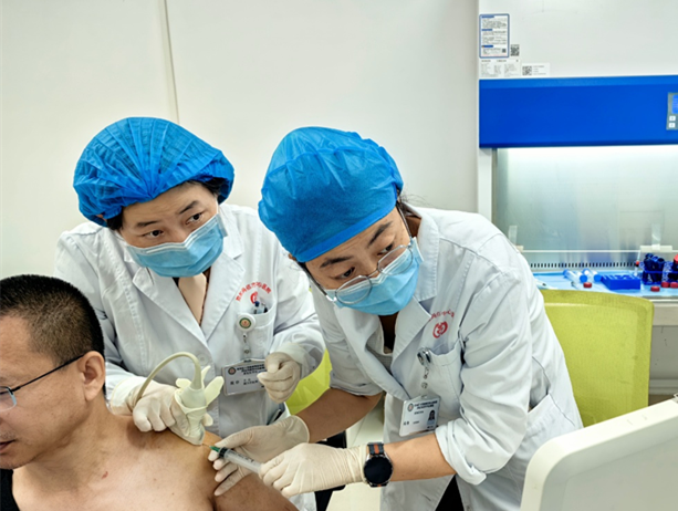殷春医生主动牵头,带领科室骨干开展技术攻关:从PRP制备流程的规范,到超声引导下注射部位的精准定位,再到术后康复方案的配套制定,她全程亲力亲为,反复演练操作细节。
