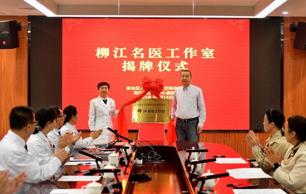 在全场热烈的掌声中,柳江教授与许春雁院长共同揭开“柳江名医工作室”牌匾的红幕,标志着工作室正式投入运行。随后,柳江教授在发言中郑重承诺:“我和团队将通过定期坐诊、教学查房、疑难病例多学科讨论、学术讲座等多种形式,把先进的诊疗理念、成熟的临床技术毫无保留地引入克拉玛依,全力帮助提升本地区肿瘤综合防治能力,让患者不用奔波外地,在家门口就能享受到省府同质化的诊疗服务。”