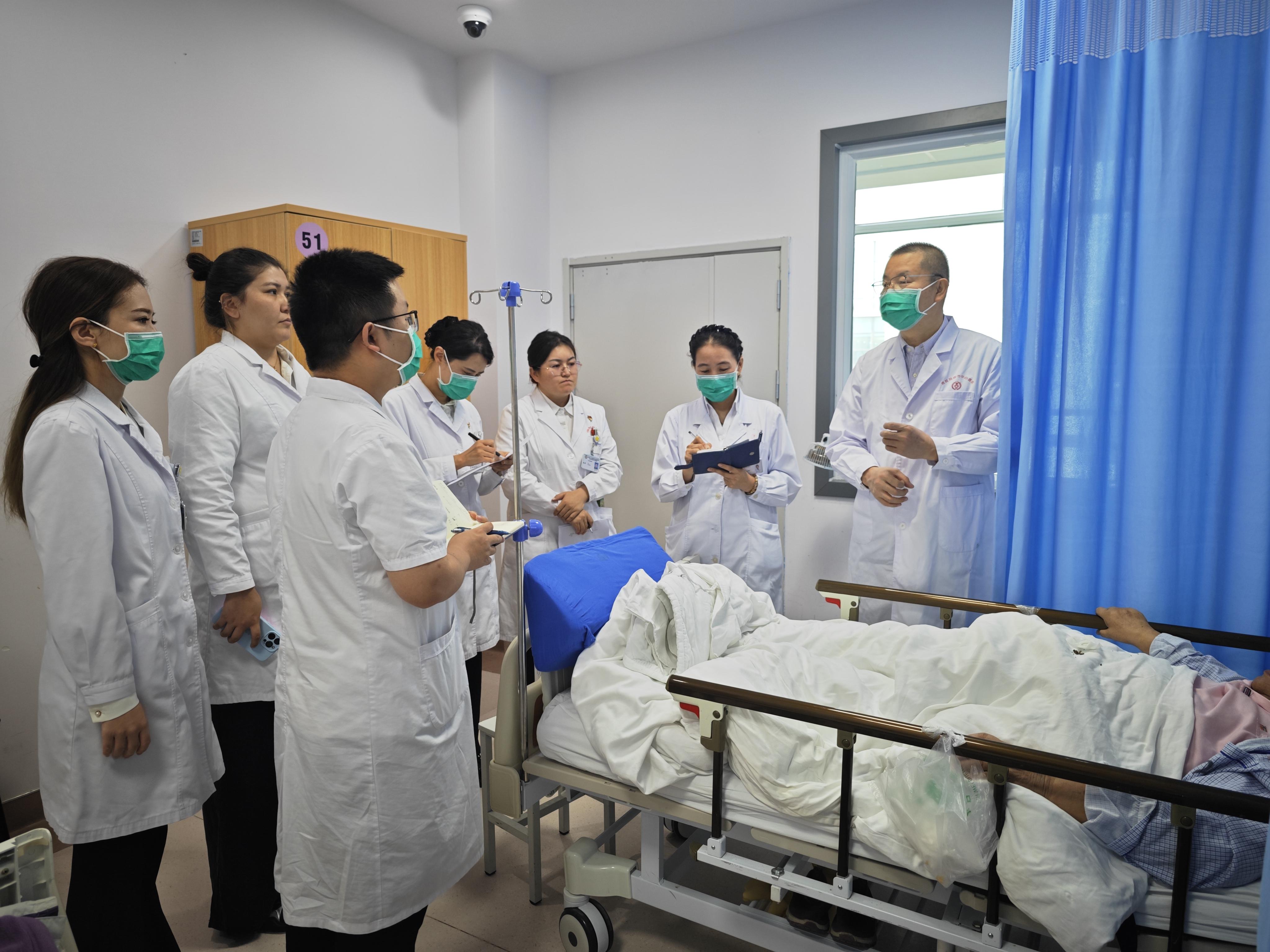 揭牌仪式刚一结束,柳江教授便即刻切换到“工作模式”,径直前往医院肿瘤科病房开展大查房,用“揭牌即上岗”的务实行动,诠释着医者的责任与效率。在病房内,他逐一查看住院患者的病情,仔细翻阅病历资料,认真听取主管医生的病例汇报;针对多例复杂肿瘤合并癌痛的疑难病例,他与科室医务人员展开深入研讨,从病情评估、治疗方案调整到后续随访管理,都给出了具体、细致的指导,并为患者量身定制了个体化诊疗方案。在场医护人员纷纷表示,柳江教授的现场指导“干货满满”,为大家解决了不少临床实操中的困惑。