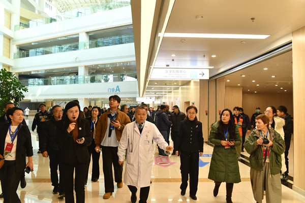 在穿过宽敞明亮的门诊大厅时,参访团被医疗街上智能导航系统和自助服务终端所吸引。从智能分诊、线上预约到一站式缴费,全程数字化服务让嘉宾们不禁感慨“智慧医疗”给患者带来的革命性便利。“非常先进!这种人性化的智慧服务不仅优化了就医流程,更让患者感受到了科技带来的温暖,值得我们借鉴。”一位外国友人赞叹到。