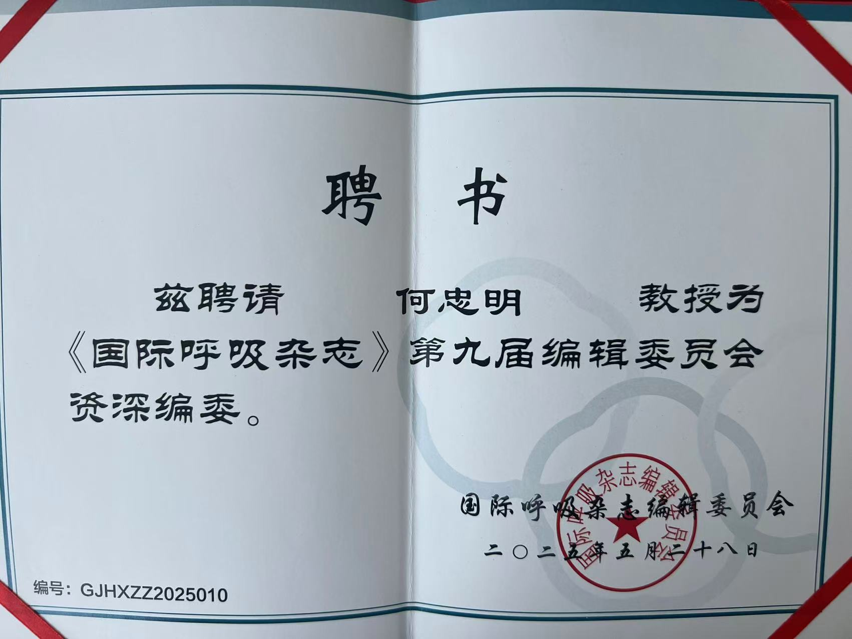 这份业界认可并非偶然,此前的学术任职中已可见端倪。今年5月,何忠明医师就已凭借扎实的专业功底获聘中华医学会核心期刊《国际呼吸杂志》资深编委,在呼吸病学学术传播与发展中承担起重要职责,而此次国家级学会副主委的聘任,更是对其专业权威的进一步加持。