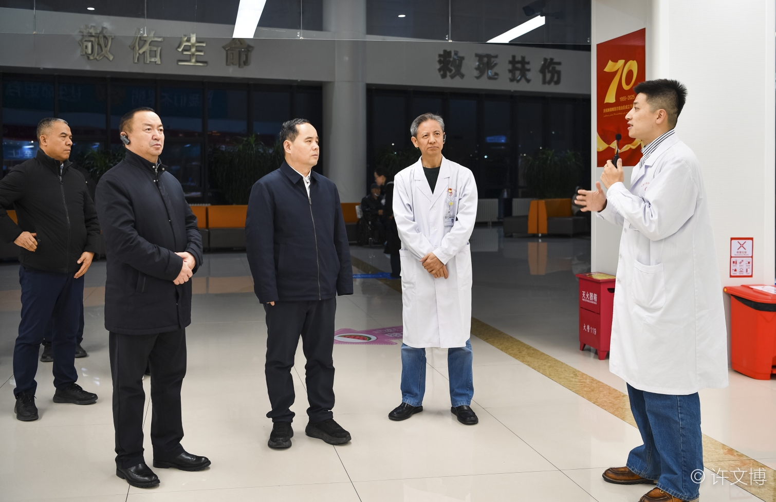 调研组先后参观了一站式患者服务中心、门诊大厅、急诊等重点区域,详细了解了我院在智慧医院建设方面的创新举措与阶段成果。党委书记凌立省向调研组介绍了医院如何通过信息化平台优化服务流程、提升就医效率、改善患者体验的具体实践。