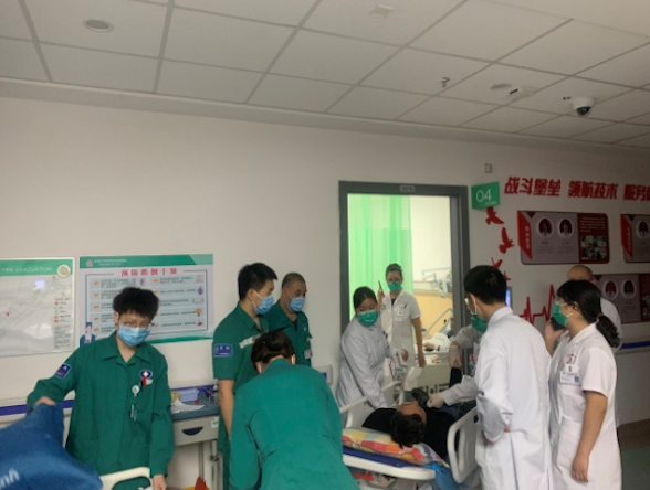 由于事发地在病房,为确保患者安全,住院总提前拨打了院内急救电话,通知急诊科做好准备,约10分钟后急诊科医护人员到达病房,医护合力将阿先生平稳转移至平车上,由医护一路护送至急诊科,全程监护生命体征,实现了无缝衔接。