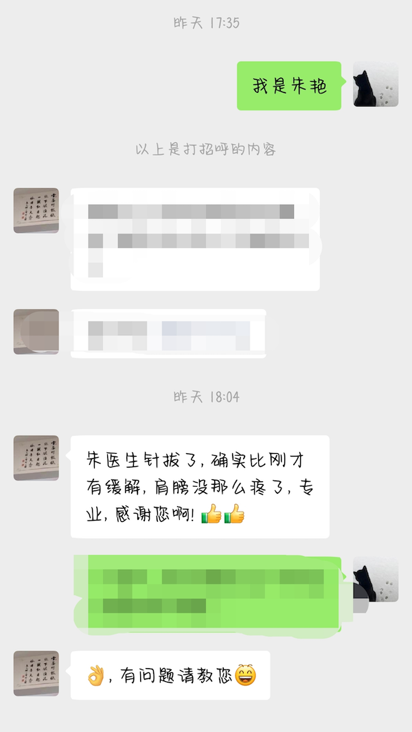针刺5分钟后,朱艳医师轻轻地指导患者尝试做颈部右转的动作。那一刻,时间仿佛都凝固了,所有人的目光都聚焦在患者身上。患者缓缓地转动颈部,脸上渐渐露出了惊喜的神情,他当即反馈疼痛感显著减轻,仿佛有一股暖流在颈部流淌,驱散了长久以来的阴霾。留针30分钟起针后,奇迹再次发生,患者肩颈部的整体疼痛大幅缓解,左肩的酸痛与抬举无力症状也明显改善,颈部活动恢复了往日的自如。他激动地握住朱艳医师的手,眼中闪烁着感激的泪花,那是一种重获新生的喜悦和感动。