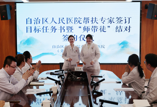 【区域医疗中心】自治区人民医院帮扶专家与受援科室签订目标任务书暨“师带徒”结对签约仪式在我院举行