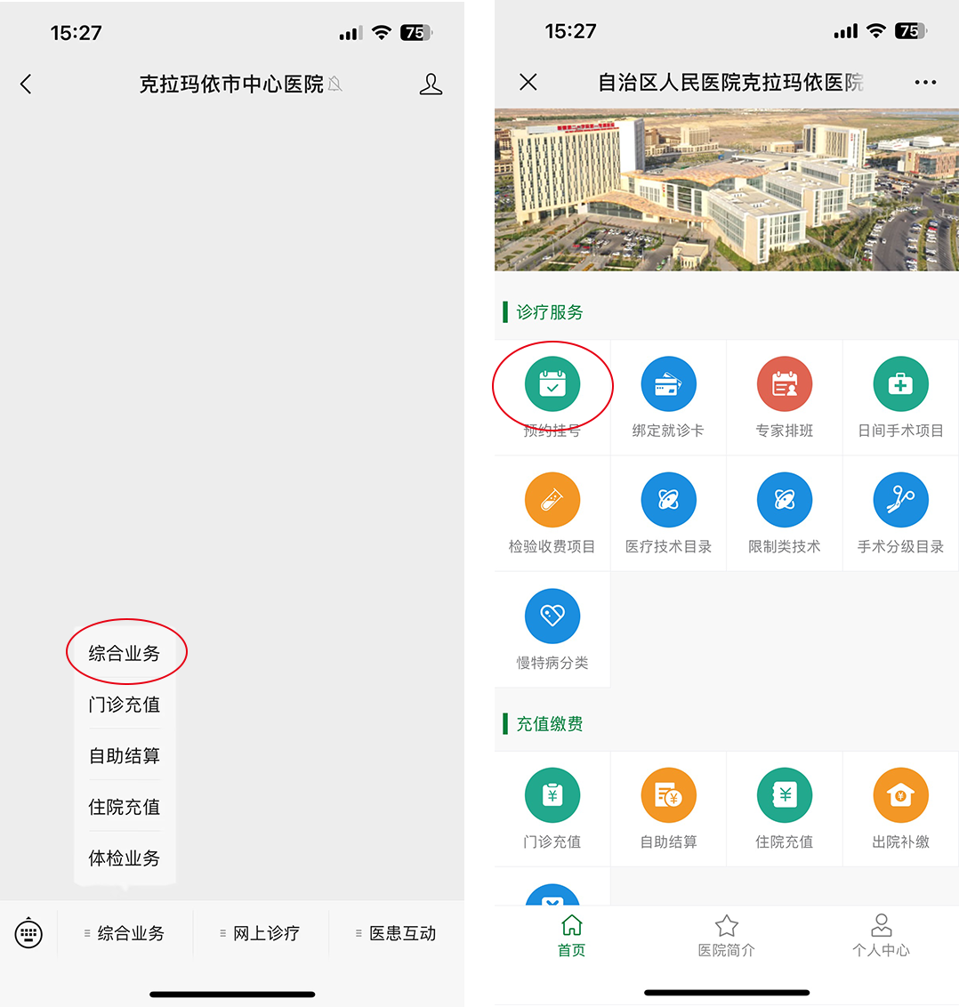 2、关注后点击平台下方菜单“综合业务”按钮,点击“综合业务”选项,按照要求进行下一步即可完成预约挂号。